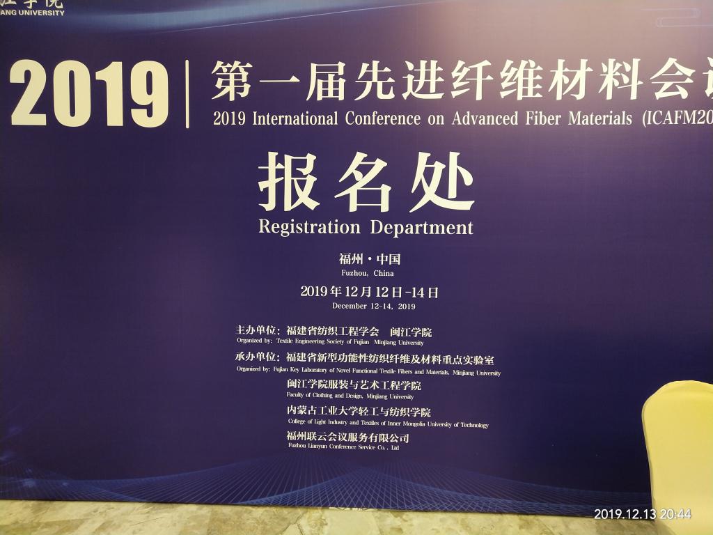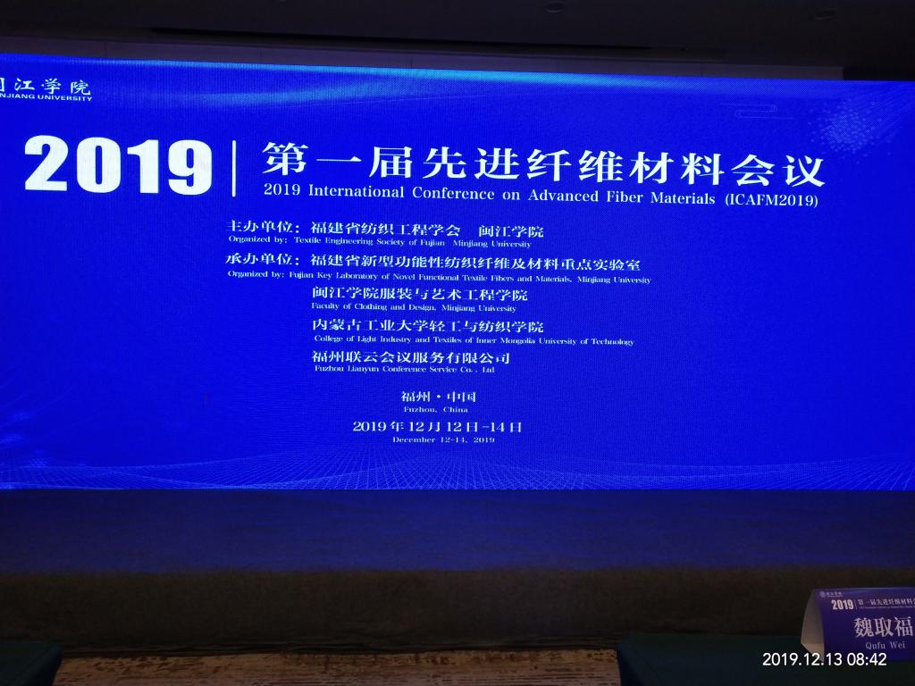 由闽江公司主办,福建省新型功能性纺织纤维及材料重点实验室、闽江公司服装与艺术工程公司、公司必一运动承办的2019年第一届先进纤维材料国际学术会议于12月13日至15日在闽江公司召开。会议主题为先进纤维制造、高性能纤维复合材料、智能可穿戴纺织品、先进纺织加工工艺等。