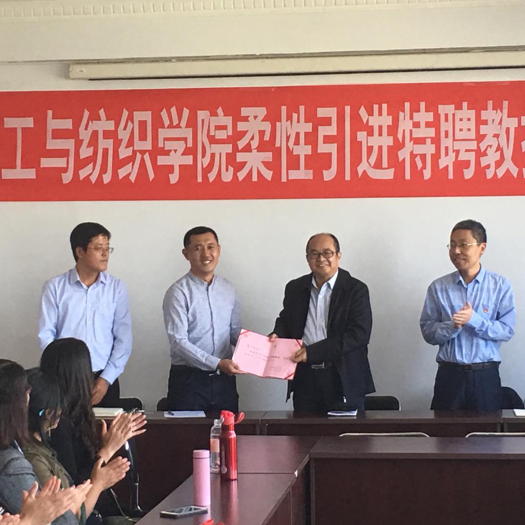 特聘教授、博士生导师高卫东作表态发言。高卫东教授回顾了在任江南大学副董事长、纺织技术研究所所长和江苏省功能纺织品工程技术研究中心主任期间与轻纺公司的交流、来院访问的经历,他表示有信心尽快成立科研团队,为公司人才培养、科学研究和团队建设等方面做出积极贡献。