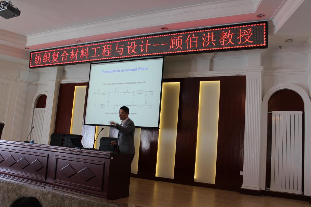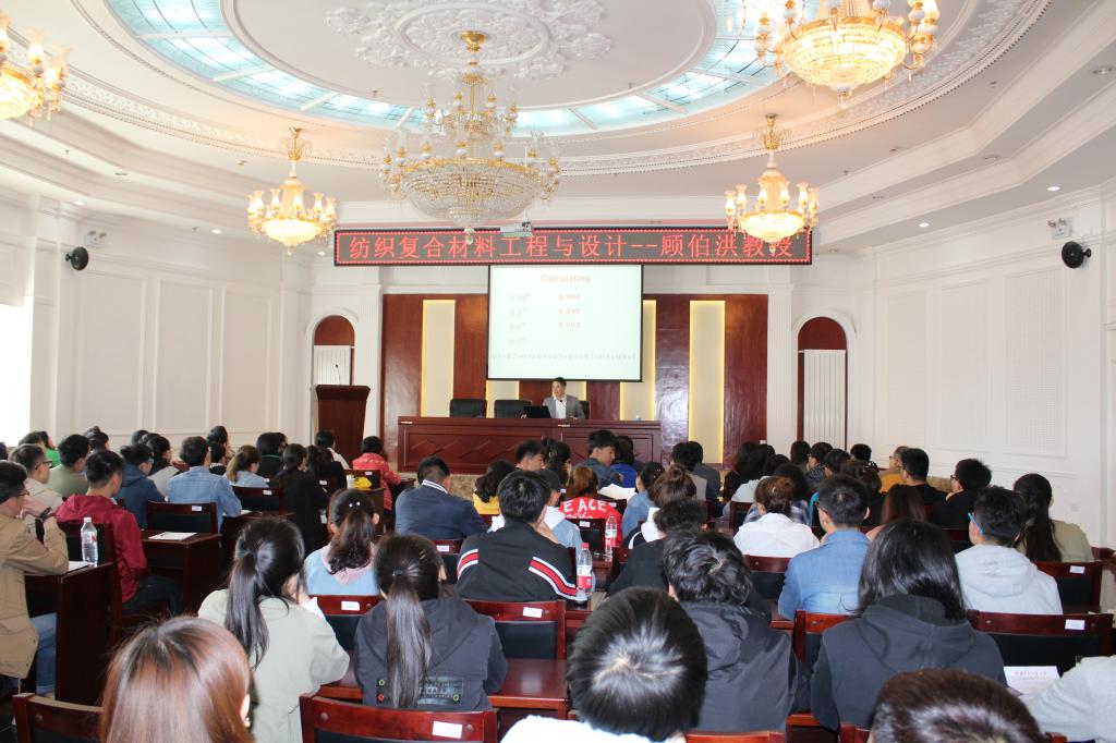 4月12日上午,公司邀请教育部长江学者特聘教授东华大学博士生导师顾伯洪教授来校作题为“纺织复合材料工程与设计”学术报告。公司教师、研究生、本科生共计100余人参加报告会。公司副经理高晓平教授主持报告会。