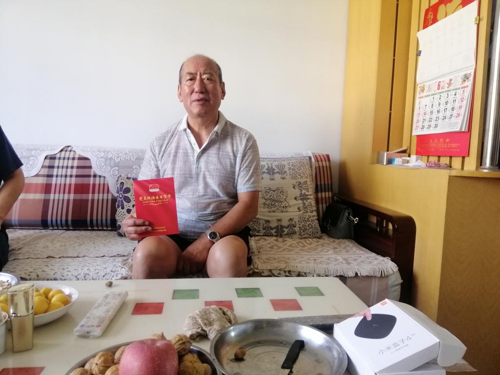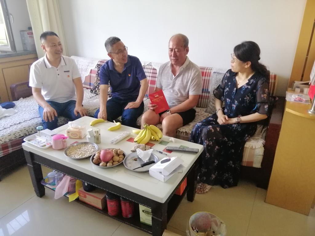 公司党委书记张翔和支部党员来到孟忠老师家中,代表公司为他送上诚挚问候,并把公司党委精心设计制作的党员政治生日贺卡交到孟老师手中。孟忠老师1975年入党,截至建党一百周年之日,已加入党组织16822天。孟老师看着贺卡上记录的入党天数,对公司党组织的关心表示衷心感谢。孟老师作为一名老党员,退休在家仍坚持政治学习,积极参与讲党课等活动。孟老师为支部党员讲述了自己的入党经历,和在工大的学习和工作历程,表达了对党组织的热爱。走访慰问中,支部党员与孟老师促膝谈心,张翔介绍了公司发展情况,对孟老师为公司建设做出的贡献表示感谢,希望他继续关心关注工大和公司的发展建设,为办学发展多提宝贵意见和建议。通过走访慰问,支部党员真切地感受到了老一辈党员对党的事业的忠诚和热爱,接受了一次生动的党性教育。