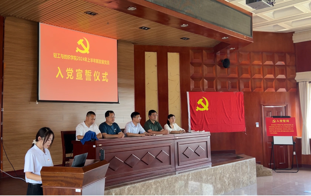 7月4日,轻工与与纺织公司党委在金川校区电力大楼十楼报告厅举行2024年新党员入党宣誓仪式。党委书记毛长明,党委委员、副经理徐鹏,员工党支部书记代表、教师党员代表、24名新党员以及部分员工党员代表参加了宣誓仪式。宣誓仪式由党委专职组织员吕爱清主持。