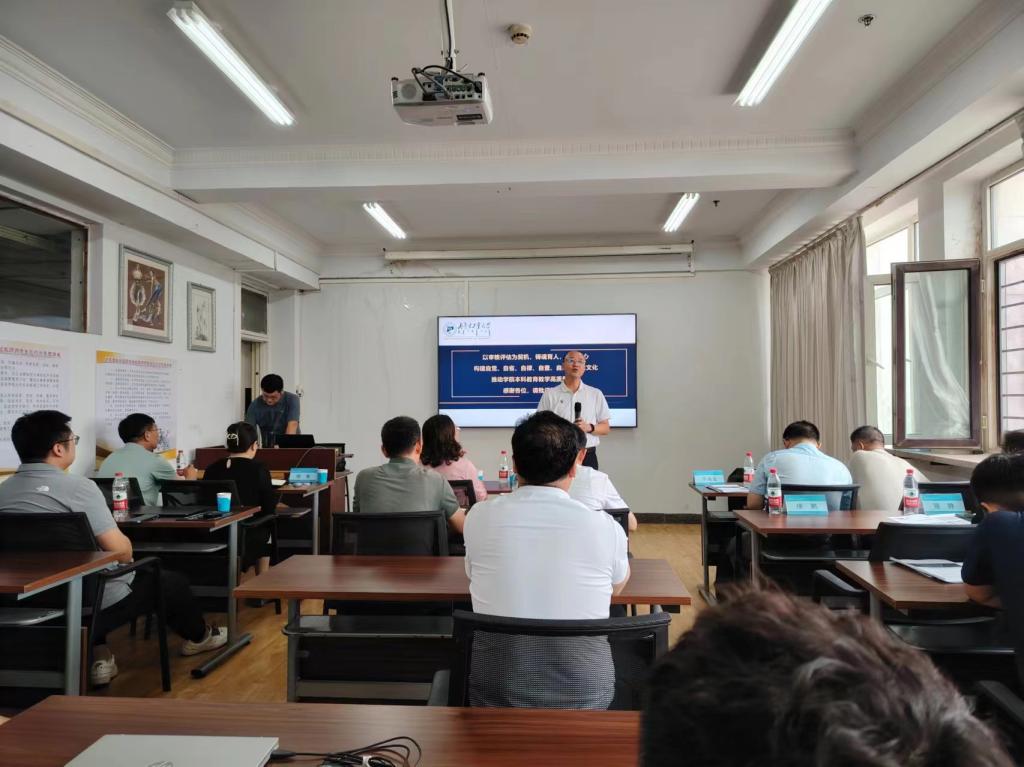 为进一步促进本科公司产品质量提升,以本科公司产品审核评估为契机,以评估指标为导向,落实以评促建、以评促强精神,2024年7月12日上午8:30分,轻纺公司教学经理徐鹏就自评自建工作向公司党委委员、副董事长刘利强、教师发展与促进中心主任陈玉宏、副主任杨斐、教务处副处长洪海龙、校督导组专家高智、王利平做主题汇报,公司全体教职工参加。