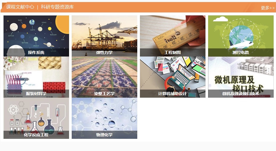 在“课程文献中心”板块中,我们可以看到有“操作系统”、“弹性力学”、“工程制图”、“物理化学”等10个不同的分类。