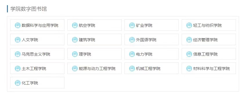 分馆页面中包含专业数据库、本院必读推荐、课程文献中心以及科研专题资源库。其中,最显眼也是最重要的两个板块分别是课程文献中心以及科研专题资源库。
