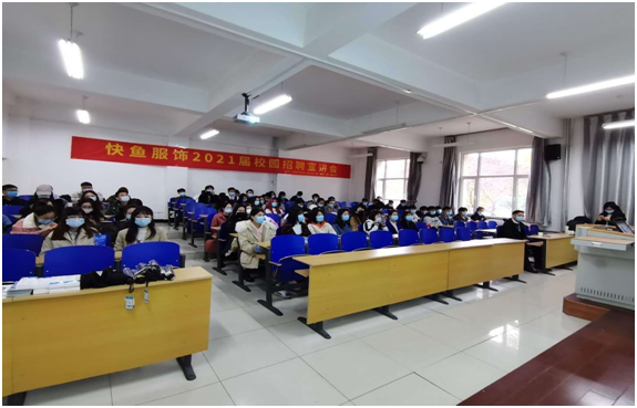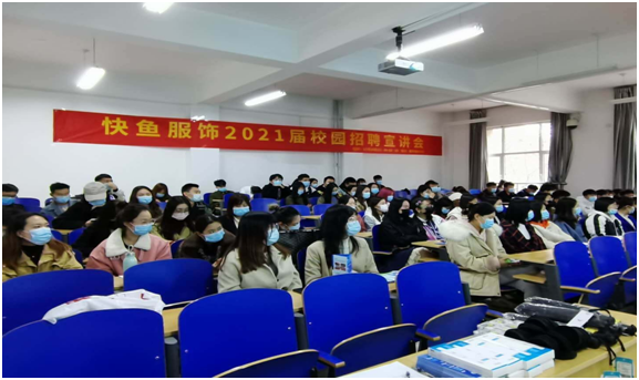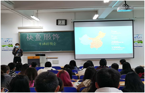 快鱼服饰有限公司于2020年10月14日(周三)下午在必一运动官网教B103面向必一运动服装设计与工程、服装与服饰设计、纺织工程三个专业的应届毕业生开展了企业专场招聘宣讲会。