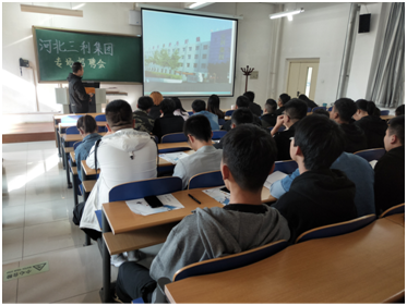 宣讲前,企业宣讲人向同学们介绍了企业历史及同行业优势。三利集团始建于1986年,前身为河北三利毛纺厂,位于有纺织之乡美称的——河北省保定市高阳县,历经三十余年的发展,已成为以毛纺织造、毛巾染整、服装服饰为主业,向金融证券业、房地产业、旅游业、乳业、家居制品等领域发展的大型民营企业集团。先进的企业文化、科学的管理体制、良好的激励机制、优秀的员工队伍,使三利集团充满着蓬勃的发展力和创新精神。随后,宣讲人又向同学们介绍了公司招聘条件、工作环境、人才培养计划及薪资待遇福利,并一一解答了同学们提出的相关问题。
