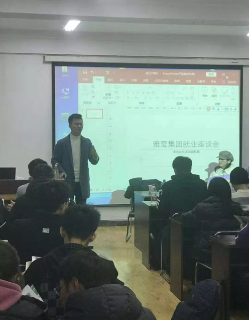 座谈会上,企业负责人介绍了雅莹集团的基本概况,并与同学们讨论了现在这两个专业的就业情况,询问了同学们的就业意向,并根据个人性格特点,分析了适合同学们的岗位与偏向的就业方向。随后,宣讲人又对公司人才需求与岗位需求等方面问题进行论述,并对同学们提出的疑问进行一一解答。