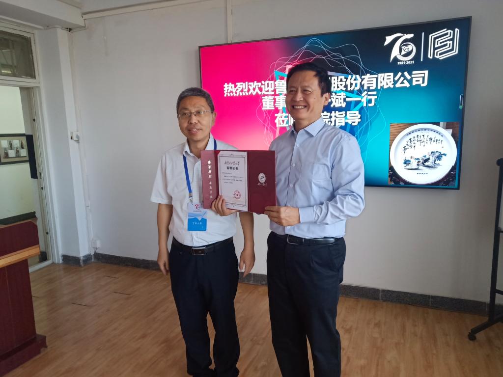 座谈会最后,张翔书记代表公司及公司向刘子斌颁发了捐赠证书和荣誉教授聘书。