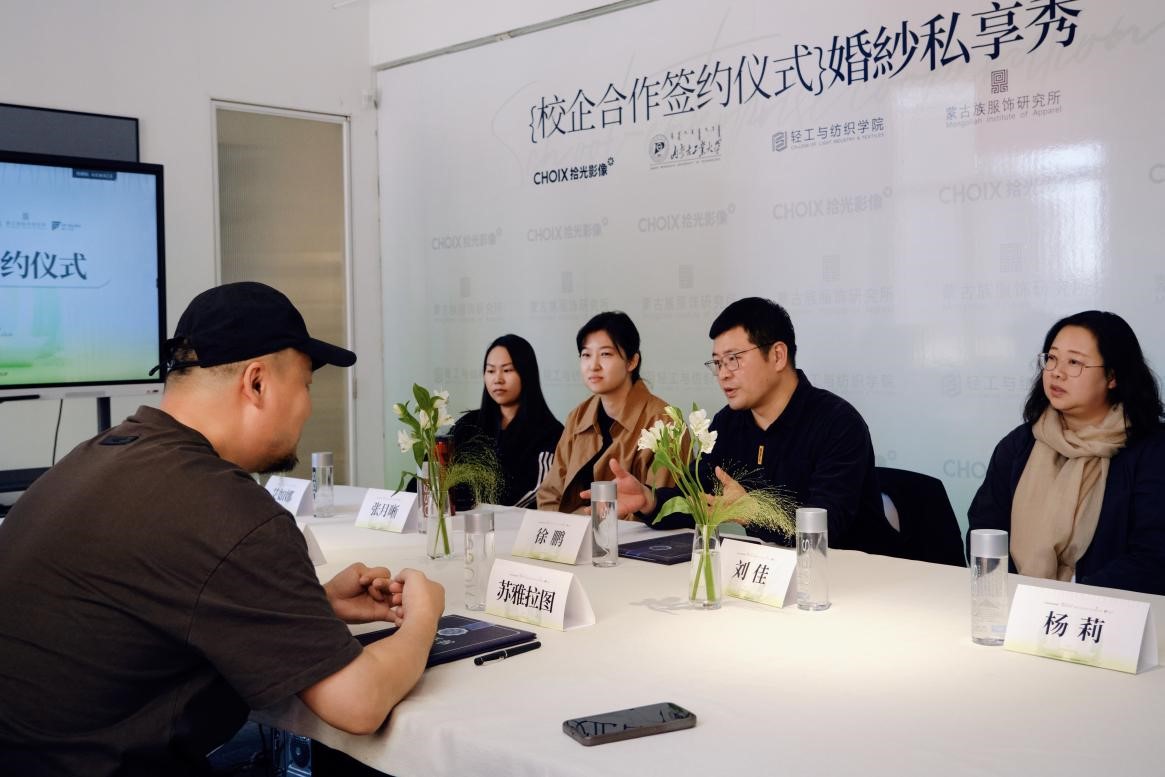 3月30日下午,副经理徐鹏代表公司与呼和浩特市拾光摄影公司在其艺术中心总部正式签署校企合作协议。签约仪式结束后,公司副经理徐鹏、服装与服饰设计系主任刘佳、副主任张月晰与拾光摄影艺术中心的代表苏雅拉图、周敏等人,就创新设计、专业人才培养、品牌建设、文化传承等方面的校企合作具体事项进行了深入交流。