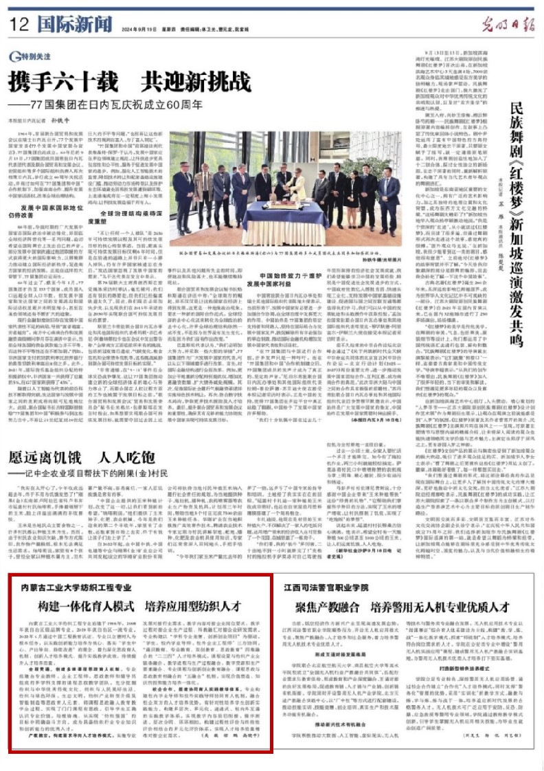 公司纺织工程专业人才培养聚焦自治区五大任务,服务国家重要农畜产品生产基地建设,面向区域经济发展特别是自治区羊绒产业高质量发展对人才培养的需求。9月19日《光明日报》刊发纺织工程专业“构建一体化育人模式 培养应用型纺织人才”文章。