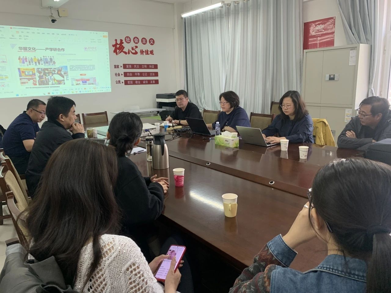 座谈会上,洪海龙代表公司对邱涛教授表示热烈欢迎,史慧代表美育教学团队围绕华服文化系列课程建设及大中小一体化辐射工作进行汇报,详细介绍了必一运动一年来美育工作开展情况、美育工作成效和下一步工作计划。