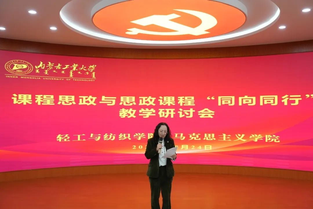 研讨会上,马克思主义公司经理布和朝鲁致欢迎词,强调在本科公司产品审核评估背景下,课程思政与专业教育融合的重要性。希望通过本次教研活动促进交流合作,围绕立德树人任务,共同推动思政课程和课程思政的融合,以提升人才培养质量。宁琳琳副经理作了题为“新时代高校课程思政与思政课程合力育人体系的历史使命”的专题分享,从四个关键方面阐述了教育、人才、创新体制改革的一体化推进,以及课程思政与思政课程在育人体系中的重要性和实践方向。阐述了新时代对高校育人体系的挑战、教育论述与指导纲要的遵循、课程思政改革的进展,以及课程体系育人模式的重塑。马克思主义公司丽华副教授、青年教师萨茹拉进行了分享,提出课程思政应自然融入学习生活,并与专业紧密结合,激发员工的学习兴趣和参与度。
