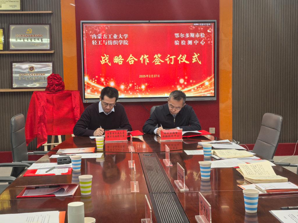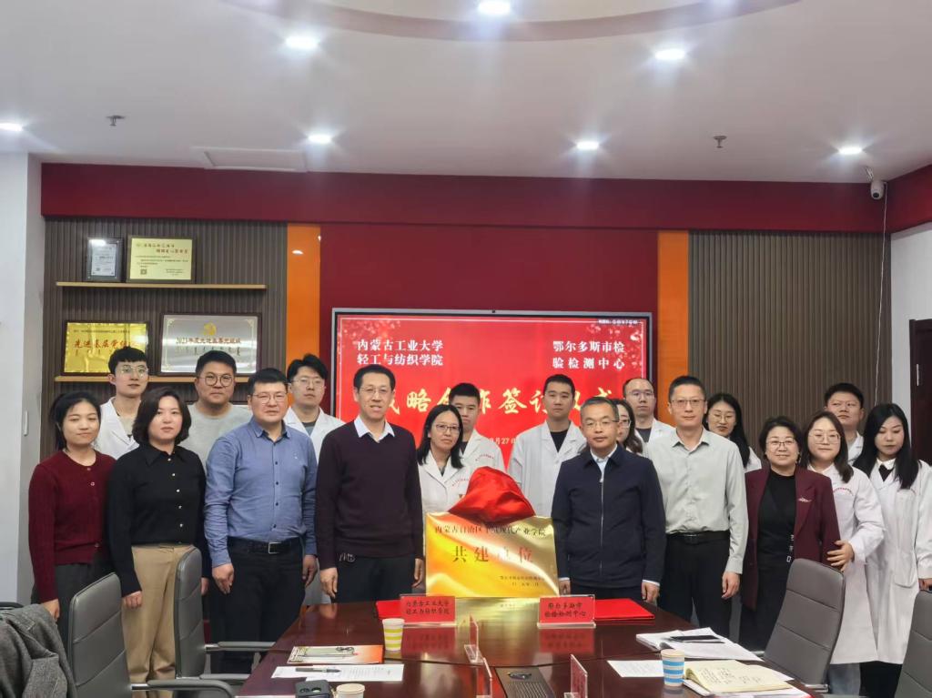 交流会上,双方共同举行了羊绒现代产业公司共建单位揭牌仪式、签署了战略合作协议书,标志着双方在羊绒产业人才培养、科学研究、成果转化等方面的合作迈上了新的台阶。同时双方就鄂尔多斯市科技计划项目联合申报进行了深入交流,进一步明确了科技合作的方向和目标,为共同申报和实施科技计划项目奠定了坚实基础。活动最后,双方还就拓展就业岗位、人才培养等方面问题进行了座谈交流,并参观了鄂尔多斯市检验检测中心实验室。