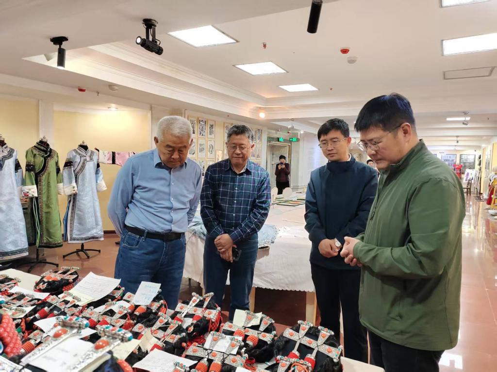 会后,理事长一行参观公司“服饰非物质文化遗产美育基地”、“石榴花开”铸牢中华民族共同体意识教育基地及美育教育实践基地,现场观摩了员工制作的蒙古族部落服饰作品及紧扣铸牢中华民族共同体意识主线的展陈内容设计。理事长对公司在人才培养中深耕地域文化底蕴、在教育实践中创新融合地方资源、在文创研发中赋能产业升级的办学模式表示高度认可。
